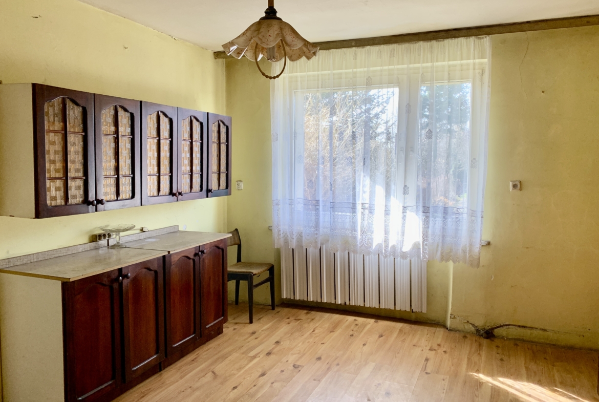 Lokal przeznaczony do remontu, co pozwala przyszłemu właścicielowi swobodę i wybór własnego stylu wykończenia wnętrza. Dach pokryty dachówką.