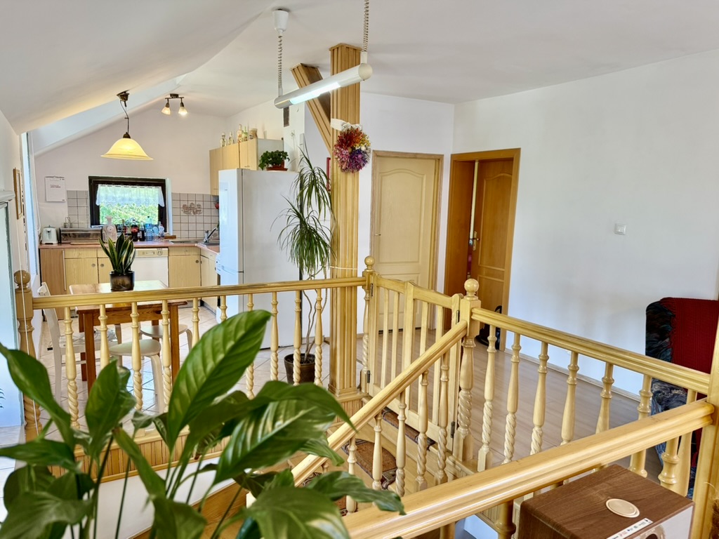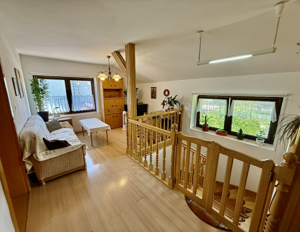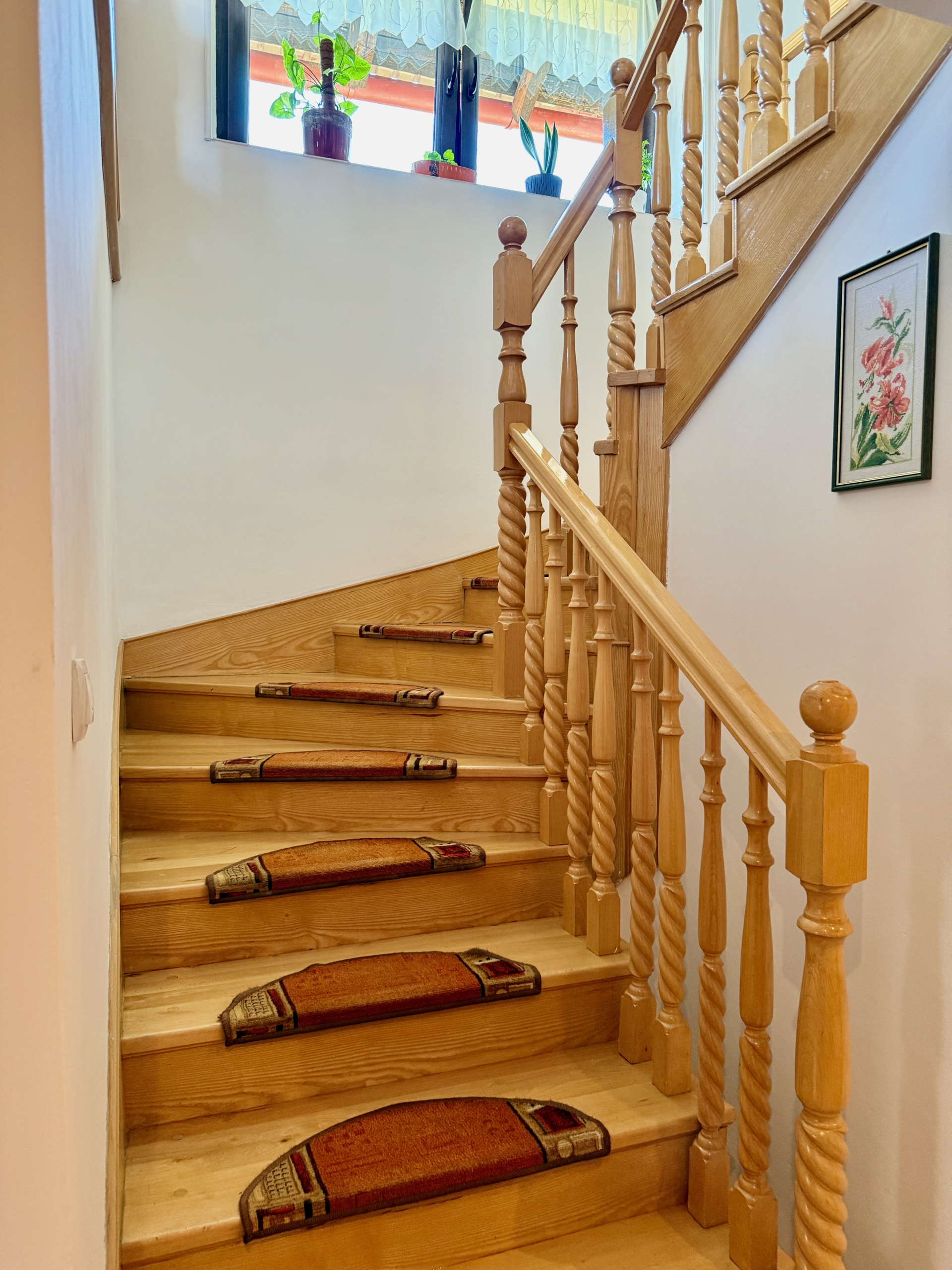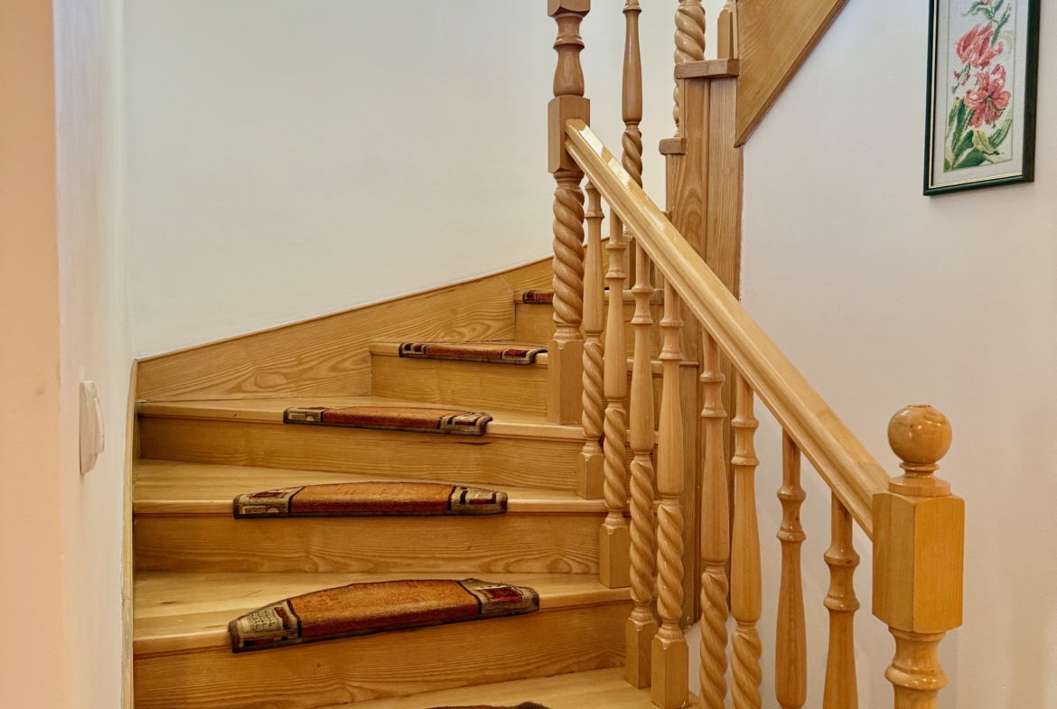 - Zabezpieczone schody na piętrze barierką – to idealne rozwiązanie dla rodziny z małymi dziećmi.