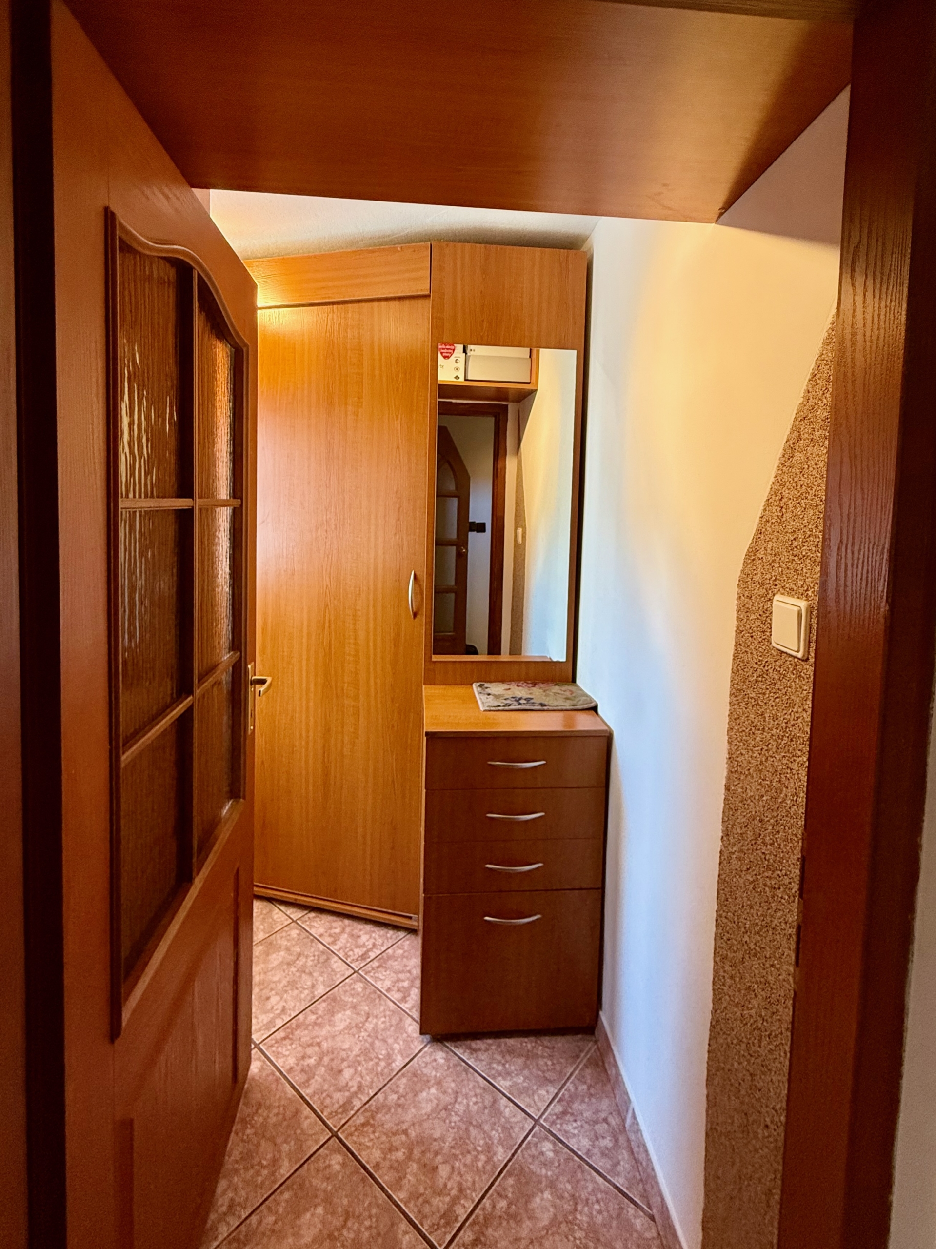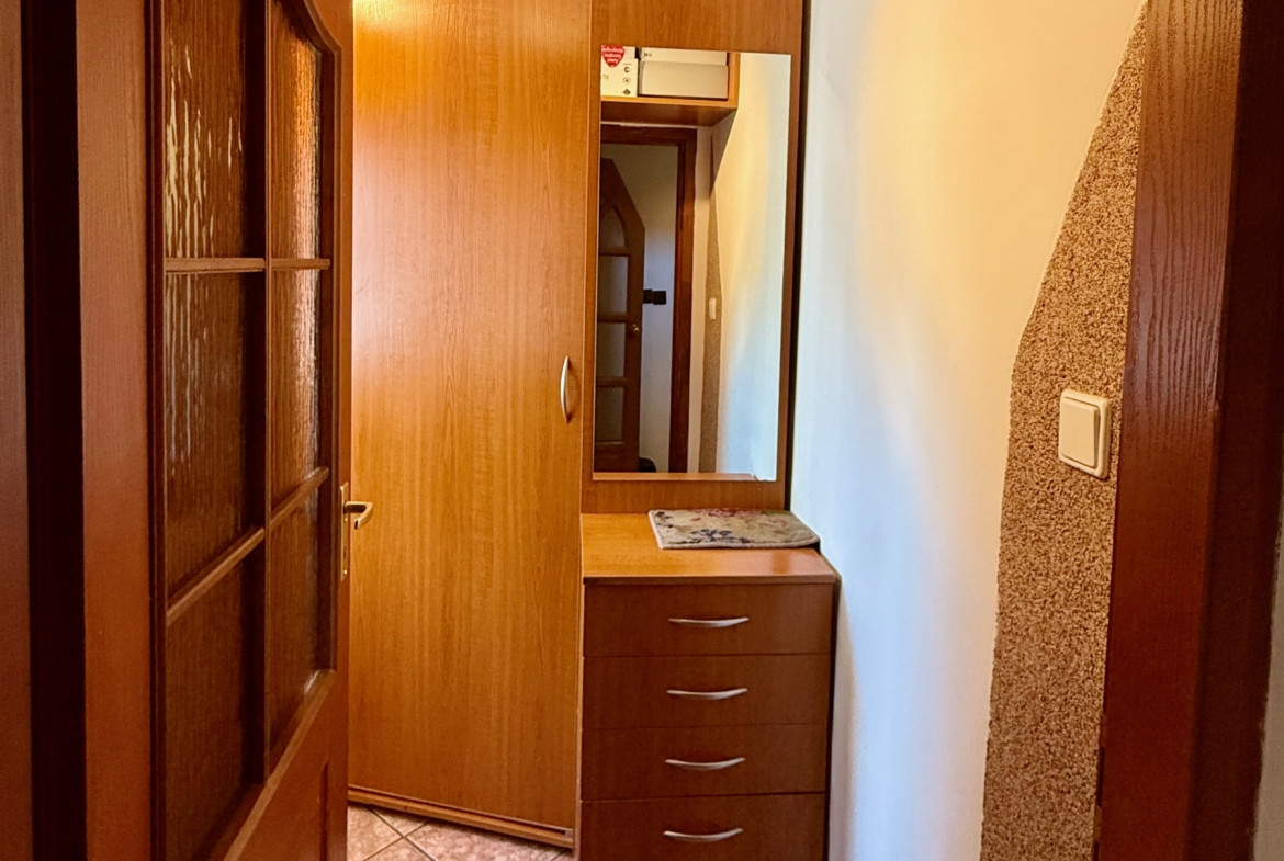 - Na podłogach kafelki, panele podłogowe oraz wykładziny, okna PVC.