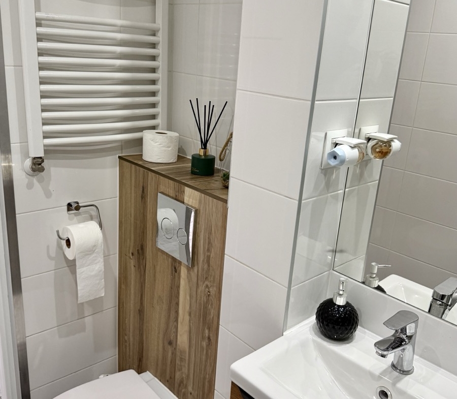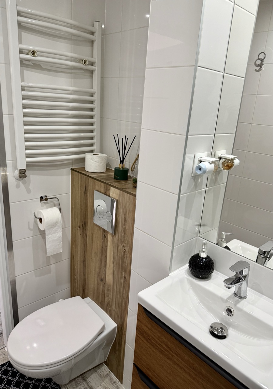 Lokal w stanie do zamieszkania i wprowadzenia się od zaraz idealne dla rodziny lub pary. W kuchni gładzie oraz kafelki, meble kuchenne na wymiar oraz wyposażona w sprzęty AGD, nowa lodówka. W pokojach jak i przedpokoju kafelki, na ścianach ozdobne tynki, farby, kamienie oraz lamele dekoracyjne. W przedpokoju pojemna szafa przesuwna. W salonie wyjście na balkon oraz zamontowana klimatyzacja. Przynależna piwnica do lokalu.