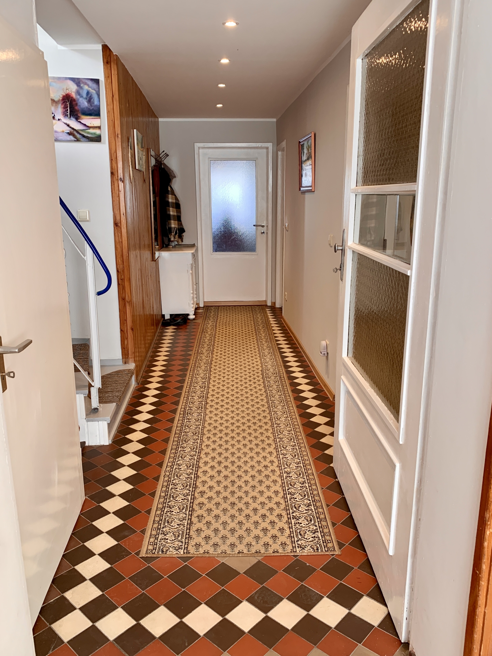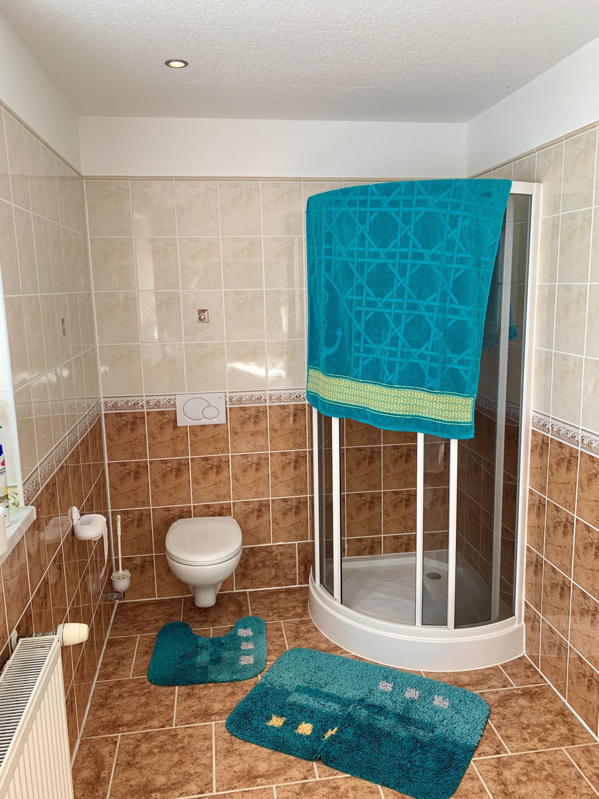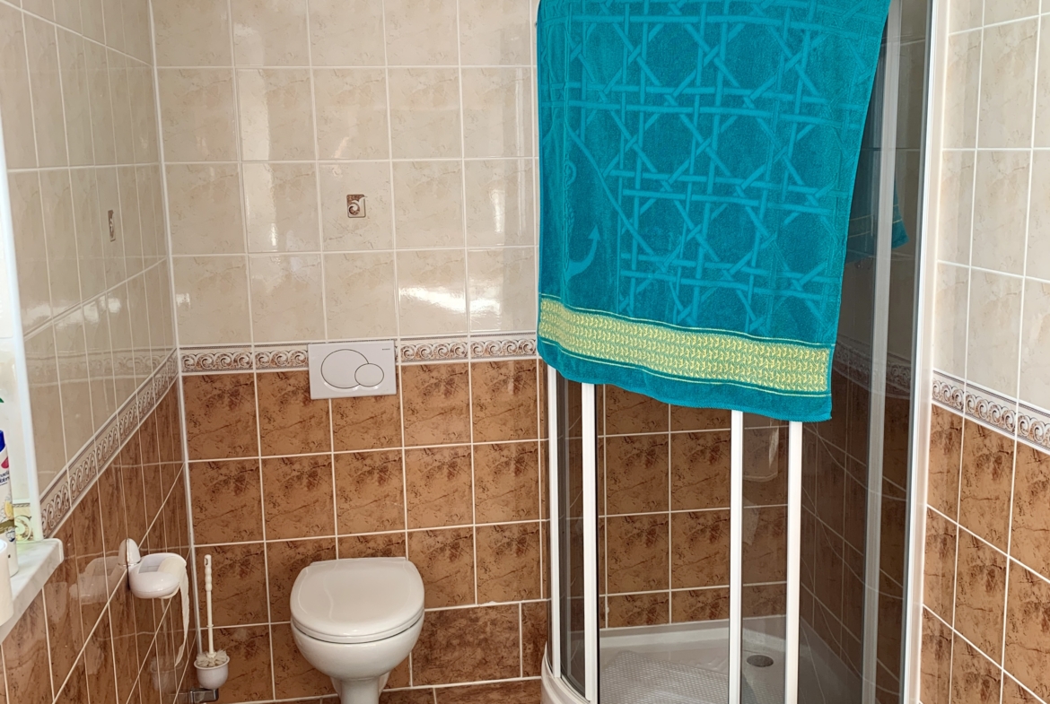 Na parterze: wiatrołap, hol, toaleta, łazienka z prysznicem, kuchnia, spiżarnia, 2 pokoje.