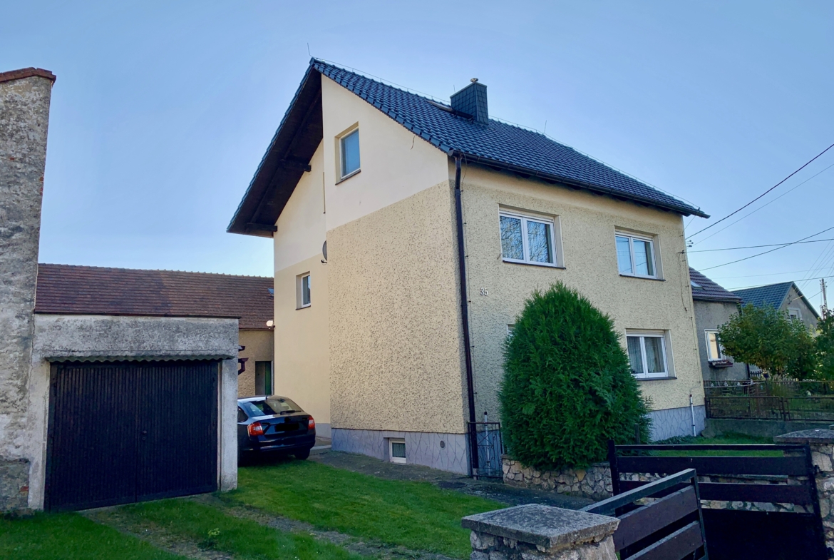 Na terenie posesji znajduje się garaż jednostanowiskowy oraz budynek gospodarczy, za którym znajduje się dalsza część działki.