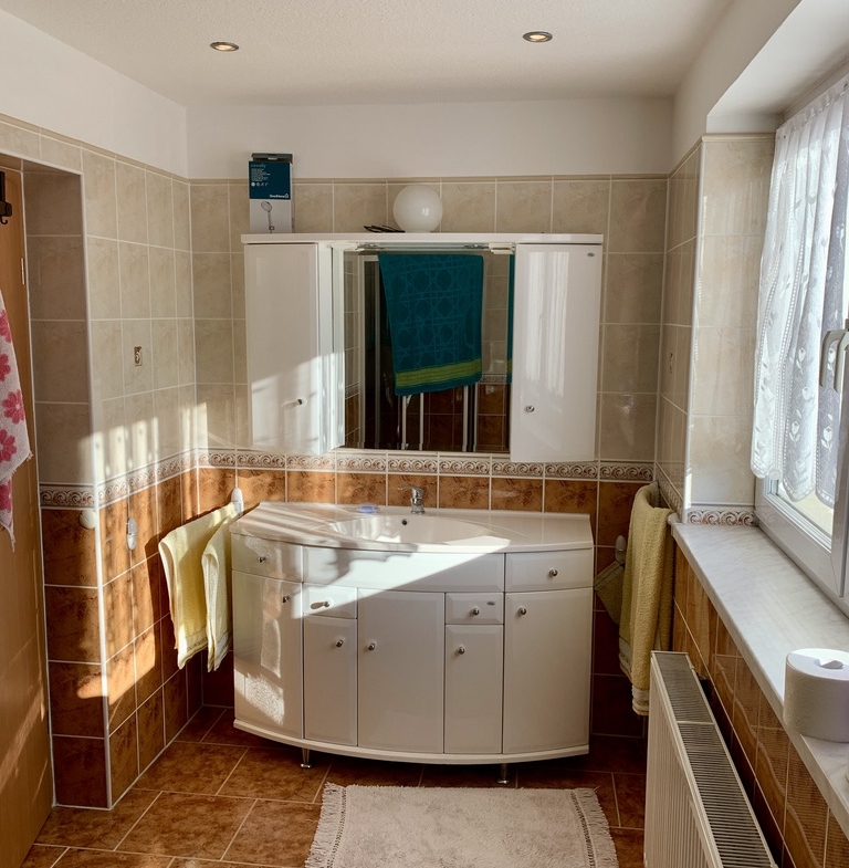 Dom zadbany i w stanie do zamieszkania, dach z dachówką ceramiczną, budynek częściowo podpiwniczony. Okna PVC (częściowo z roletami zewnętrznymi), ogrzewanie olejowe oraz dodatkowo w kuchni piecyk wolnostojący “koza”.